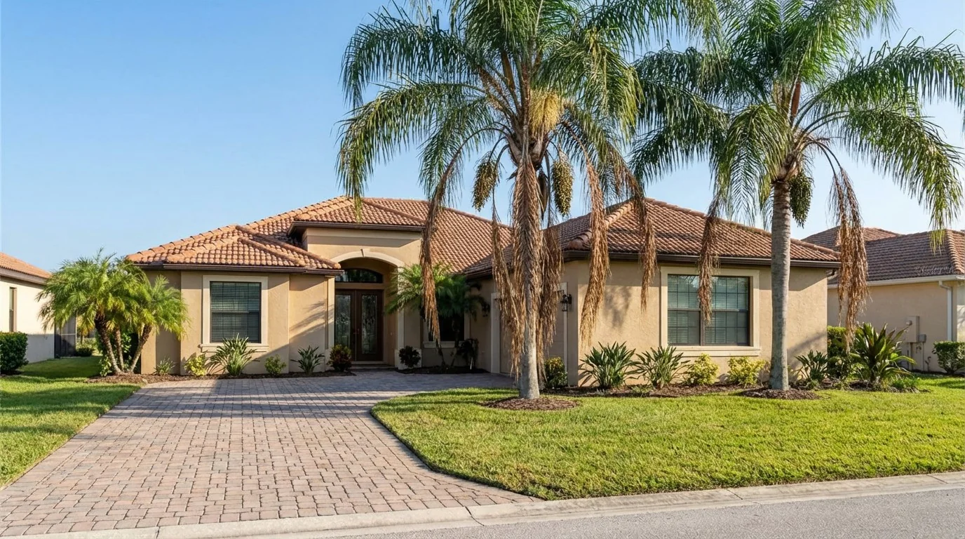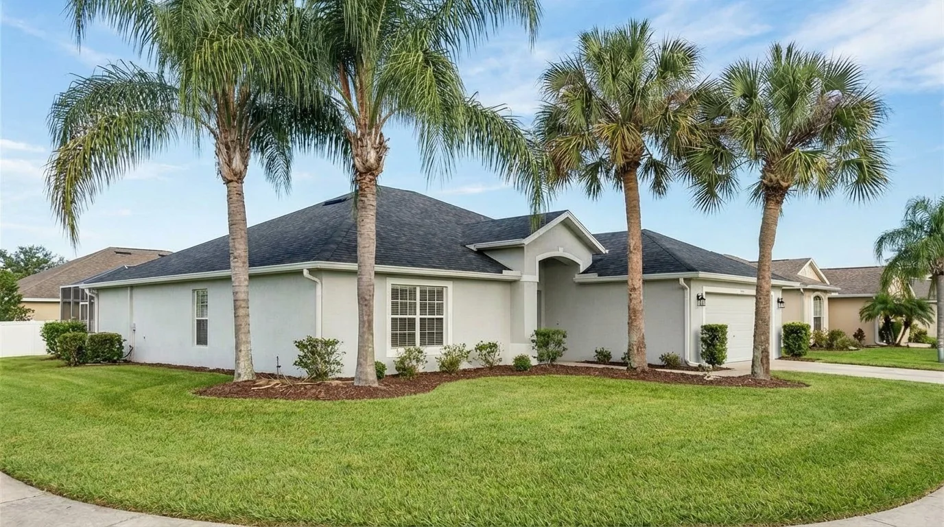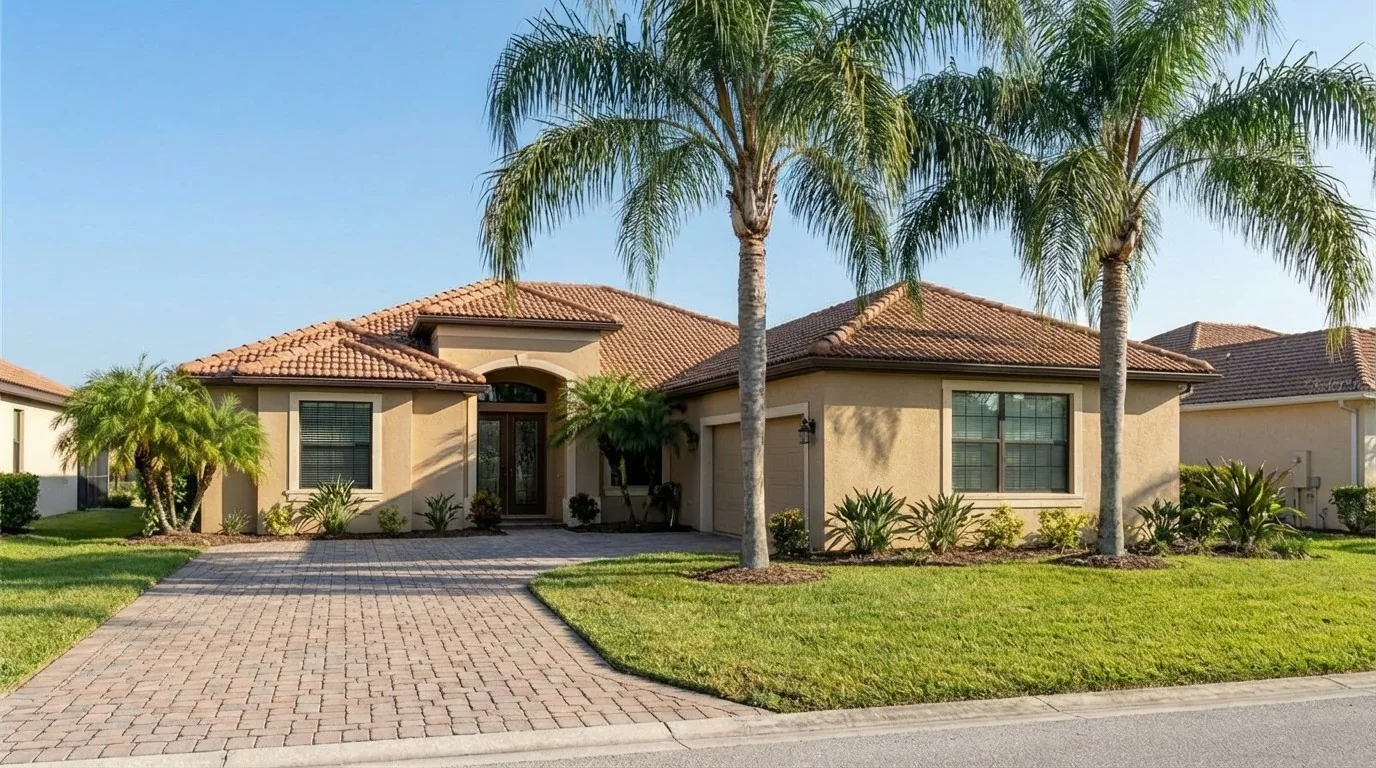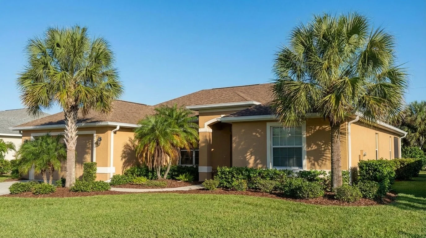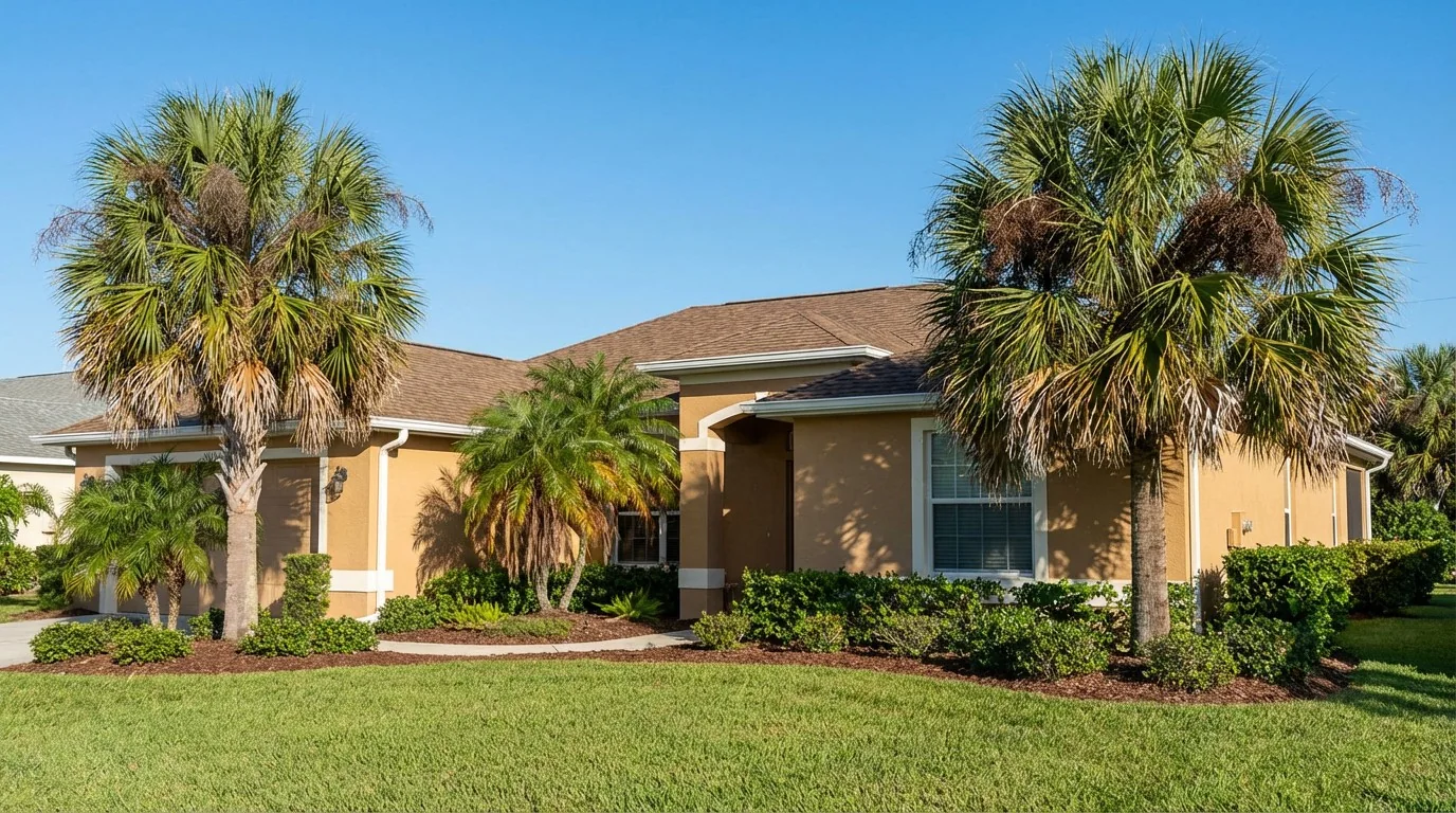 Front entry palms cleaned up to keep the driveway and approach neat, balanced, and well kept.